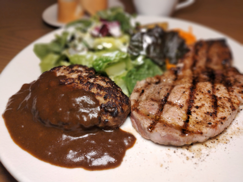 ・自家製ハンバーグ~カレーソース~&豚ロースのグリル~マキシマムスパイス~