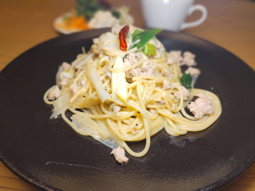 ・下仁田ねぎとやまと豚ソーセージのペペロンチーノ